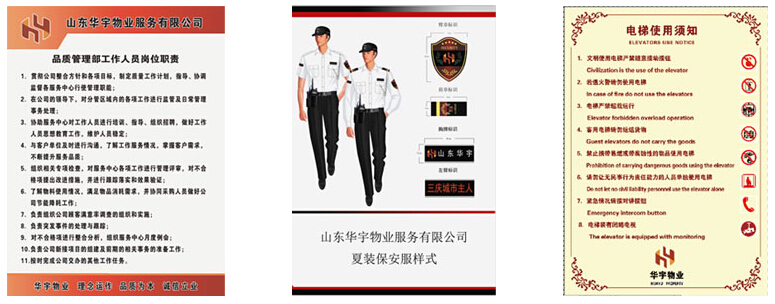對(duì)服務(wù)項(xiàng)目建立人性化服務(wù)標(biāo)識(shí)系統(tǒng)(CIS)。完善的標(biāo)識(shí)系統(tǒng)是物業(yè)區(qū)業(yè)主、外來(lái)參觀人員明亮的眼睛,也是物業(yè)管理的形象工程。根據(jù)公司的標(biāo)識(shí)系統(tǒng)管理規(guī)范,我們將建立公眾標(biāo)識(shí),如道路指引標(biāo)識(shí)、物業(yè)區(qū)標(biāo)志、消防標(biāo)識(shí)、綠化標(biāo)識(shí)、設(shè)備設(shè)施標(biāo)識(shí)、景觀標(biāo)識(shí)和其它公眾標(biāo)識(shí)等;其次,我們將設(shè)立服務(wù)標(biāo)識(shí),如公司標(biāo)識(shí)、服裝標(biāo)識(shí)、工作牌、辦公標(biāo)識(shí)等。具體標(biāo)識(shí)樣式節(jié)選如下:
